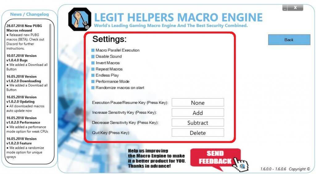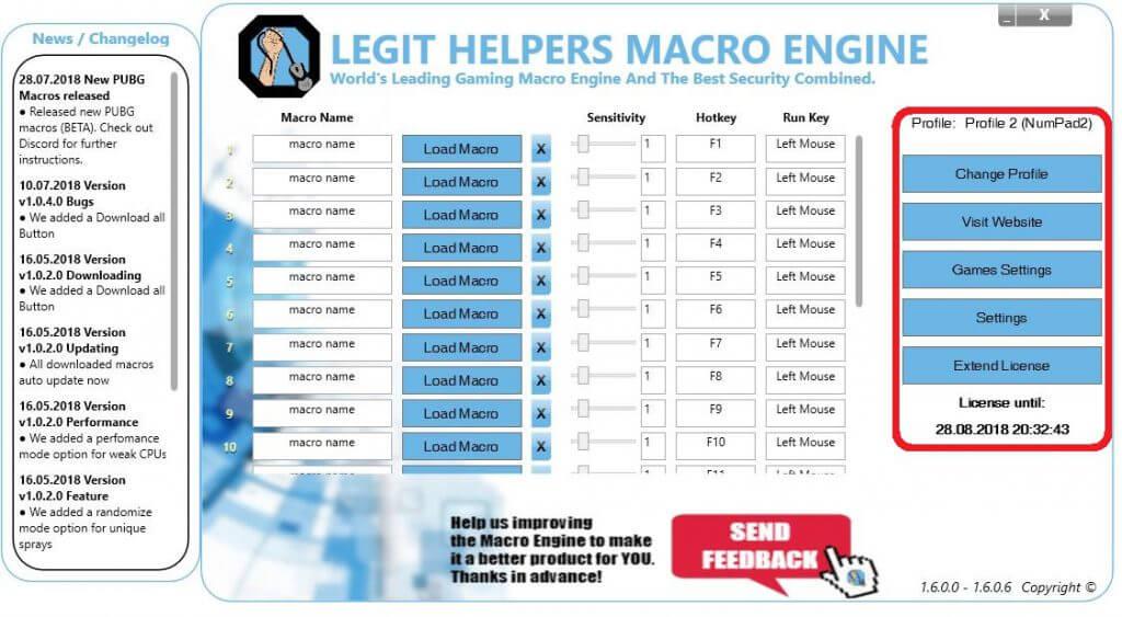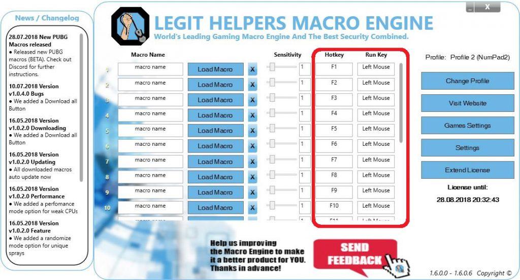Load Macro : Program içerisinde her bir oyun için hazır macrolar bulunmaktadır.Buraya tıkladığınızda tüm macroları ve ayarları görebileceksiniz seçim yapabileceksiniz.