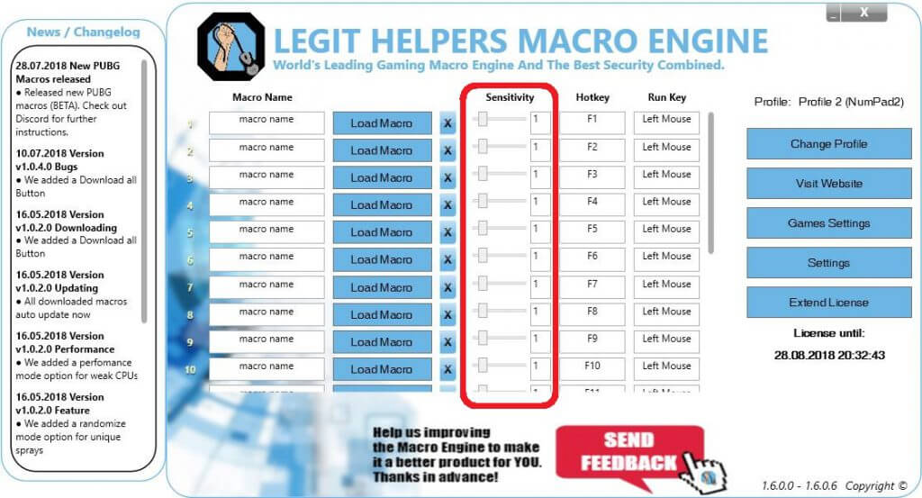 Sensitivity Menüsü : Her silah için ayrı bir sensitivity belirlemenize yarayan ayar yeridir. Örneğin Silah macro aktifken çok fazla aşağıya kayıyor ise sensitivity’i düşürerek bunu dengeleyebilirsiniz.Silah çok fazla yukarı doğru kalkıyorsa sensitivity’i yükselterek dengeleyebilirsiniz. Kişisel olarak buna zaman ayırıp ayarları denerseniz en doğru sonuçları alırsınız.